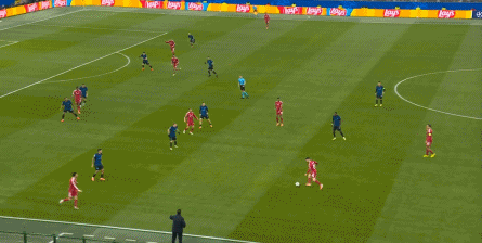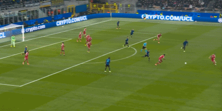 齐沃在场边可能也看出了一些问题,加上先后因伤连换两人,势必影响到了下半场替补调整的计划之后,国际米兰的思路可能是在上半场末段尽力打出一些内容,所以在半场结束前,国际米兰的节奏大大加快,进攻手段也变得简单许多,所以形成了一些威胁: